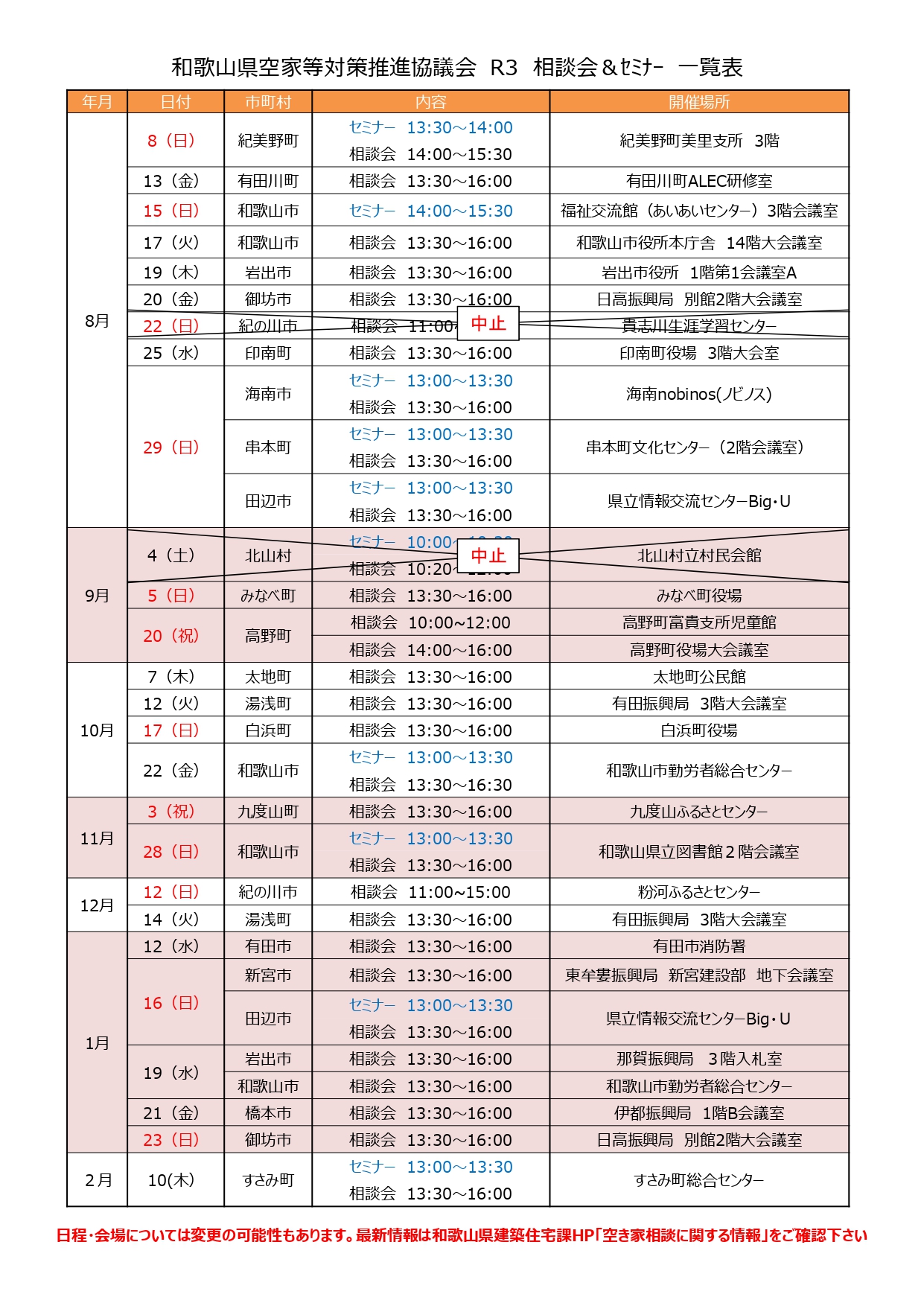 最新情報は和歌山県建築住宅課HP「空き家相談に関する情報」をご確認下さい。
