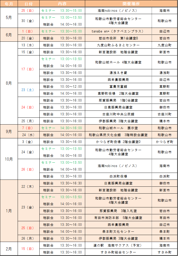 和歌山県空家等対策推進協議会R7相談会&セミナー開催予定
